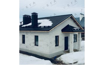 Небольшой одноэтажный дом из газобетона с простой и понятной архитектурой, построенный по проекту «ВЕГА 3», понравится ценителям традиционного классического стиля, четких геометрических форм и практичности.